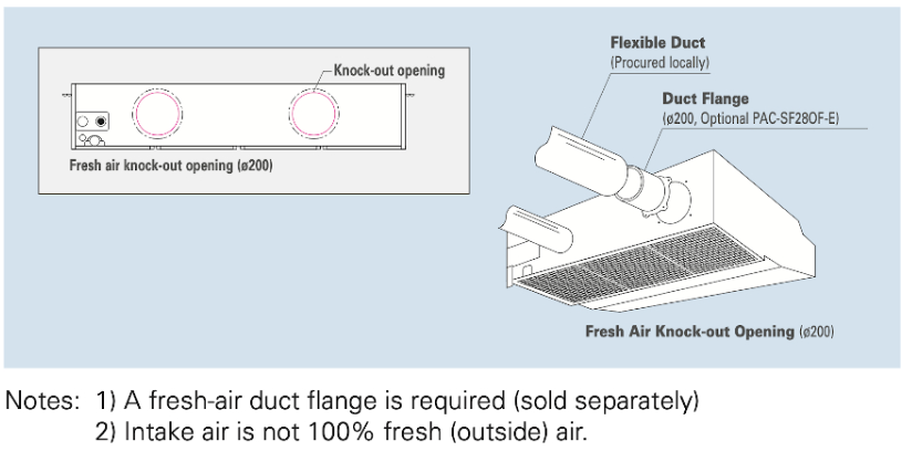 Για την ανανέωση του αέρα στο δωμάτιο, το σώμα της εσωτερικής μονάδας διαθέτει ένα άνοιγμα στο οποίο μπορεί να εισαχθεί εξωτερικός αέρας.