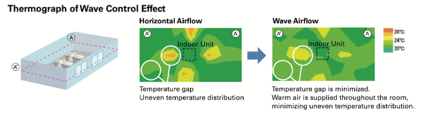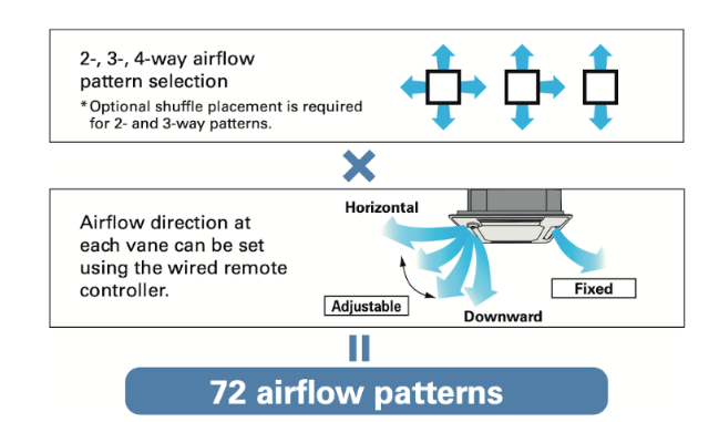 Ο συνδυασμός της ρύθμισης κάθε επιμέρους διαφράγματος, που επιτρέπει την καλύτερη ροή αέρα για κάθε τύπο χώρου, με ένα ευρύ πίδακα αέρα εξασφαλίζει τον βέλτιστο έλεγχο της θερμοκρασίας σε όλους τους χώρους. Το αποτέλεσμα είναι ένα ομοιόμορφο και άνετο σύστημα κλιματισμού.