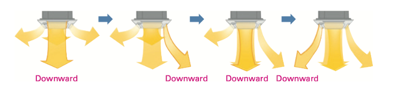 Ο αέρας κατευθύνεται οριζόντια και προς τα κάτω σε διαδοχικά, καθυστερημένα διαστήματα, ώστε να εξασφαλίζεται ομοιόμορφη κατανομή της θερμότητας στον χώρο.