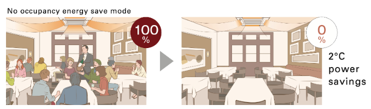Όταν ο αισθητήρας “3D i-see ” ανιχνεύει ότι ο χώρος είναι άδειος, το σύστημα αλλάζει στην προκαθορισμένη ρύθμιση εξοικονόμησης ενέργειας. Όταν ο χώρος παραμένει άδειος για περισσότερο από 60 λεπτά, εξοικονομείται ενέργεια που ισοδυναμεί με 2°C κατά τη λειτουργία ψύξης και θέρμανσης. Αυτό συμβάλλει στην αποτροπή σπατάλης σε επίπεδο θέρμανσης και ψύξης.