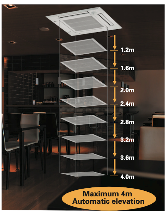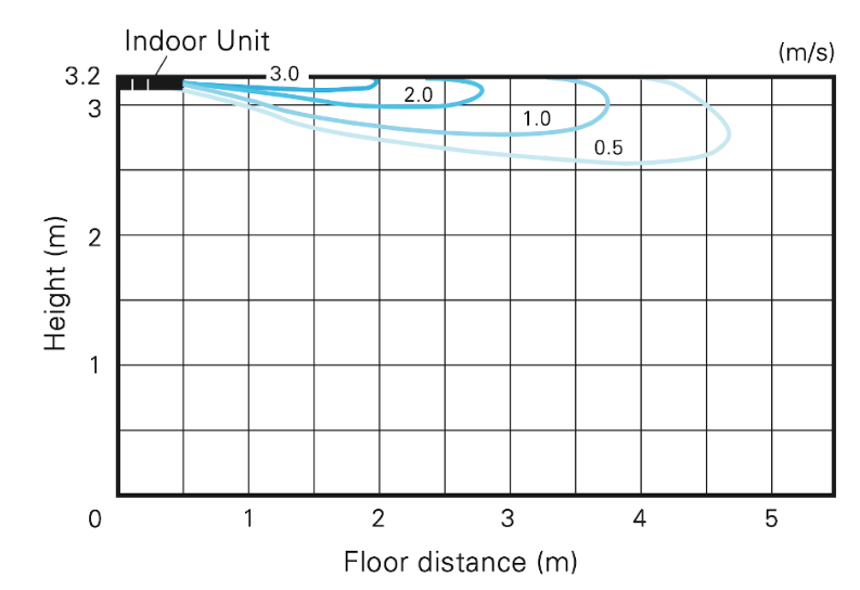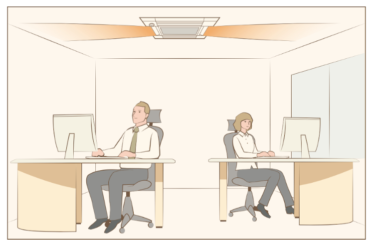 Η οριζόντια ροή αέρα κατά μήκος της οροφής εξουδετερώνει τη ψυχρή αίσθηση του αέρα. Αποτελεί ιδανική λύση για χώρους γραφείου και εστίασης.
