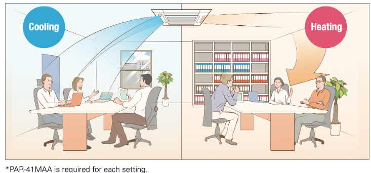 Με αυτή τη δυνατότητα, τα άτομα στον χώρο δεν εκτίθενται άμεσα στη ροή αέρα, αλλά εξακολουθούν να νιώθουν άνετα. Με την «έμμεση» λειτουργία “3D Total Flow” διατηρείται η καθοδική ροή του αέρα, ενώ ταυτόχρονα ο αέρας δεν κατευθύνεται απευθείας στα άτομα, παρέχοντας μια ευχάριστη αίσθηση ζεστασιάς στον χώρο.