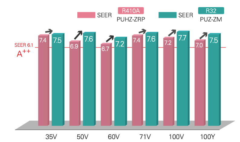 Η χρήση του νέου ψυκτικού μέσου R32 μειώνει την κατανάλωση ρεύματος, με αποτέλεσμα υψηλότερη εξοικονόμηση ενέργειας.