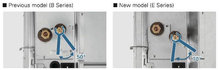 Το επάνω και το κάτω μέρος των σωλήνων υγρού και αερίου έχουν αντιστραφεί, ώστε να ολοκληρώνονται πρώτα οι εργασίες για τον συγκεκριμένο σωλήνα, που είναι πιο σύνθετες. Επίσης, χάρη στις καινοτομίες που εφαρμόστηκαν στον χώρο γύρω από τους σωλήνες, αυξήθηκε αντίστοιχα ο χώρος όπου μπορεί να μετακινηθεί το γαλλικό κλειδί, με σκοπό την ομαλότερη εκτέλεση και ολοκλήρωση των εργασιών.