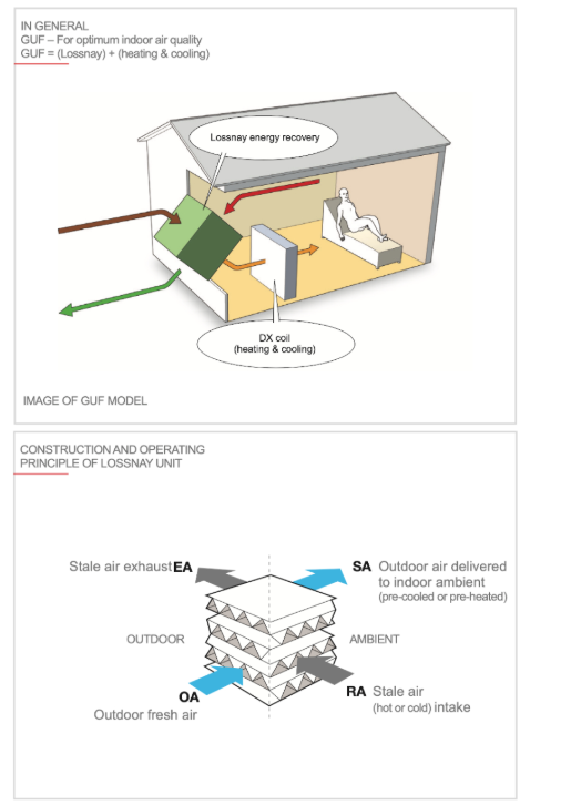 Επιπλέον, δεδομένου ότι το GUF εξουδετερώνει ολόκληρο το φορτίο λόγω εξαερισμού, είναι δυνατόν να διαχωριστεί η διαχείριση του τελευταίου από τη διαχείριση του φορτίου του δωματίου, γεγονός που διευκολύνει το σχεδιασμό του συστήματος.