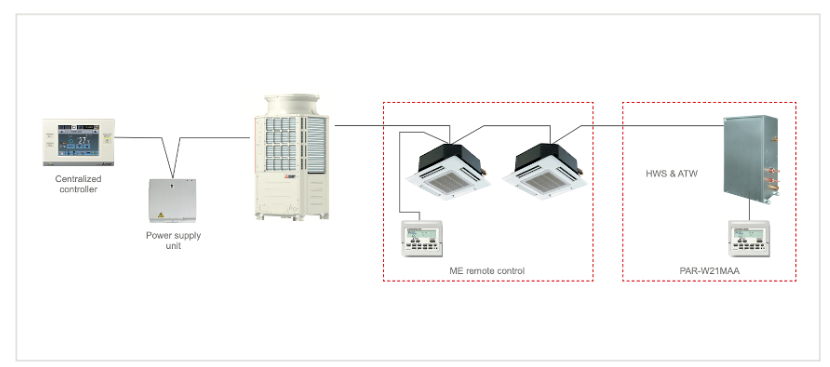 Τα δύο χειριστήρια, PAR-W21MAA και PAR-W31MAA, είναι σχεδιασμένα για τη διαχείριση μονάδων υδρονικής. Επιτρέπουν την εύκολη και διαισθητική διαχείριση έως και 16 εσωτερικών μονάδων.