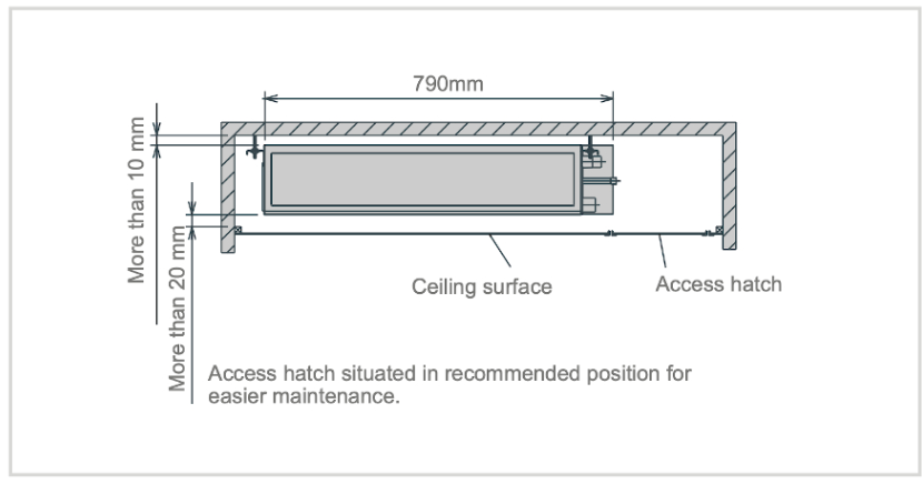Μπορεί να εγκατασταθεί χωρίς δυσκολία σε στενούς χώρους, όπως κοιλότητες οροφής ή ψευδοροφές.