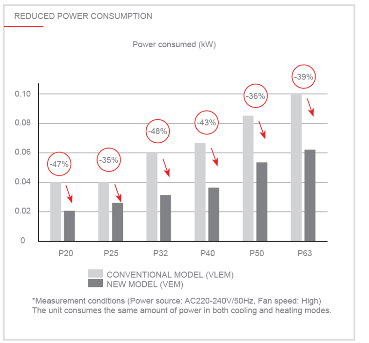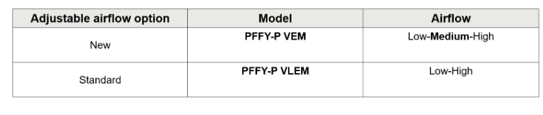 Πέρα από τα νέα εξαρτήματα και τη βελτιστοποιημένη δομή που επιτρέπουν την εκτέλεση των εργασιών με τον πιο αποδοτικό και πρακτικό τρόπο, η μονάδα PFFY-P VEM-E είναι εξοπλισμένη με τον εξαιρετικά αποδοτικό ανεμιστήρα με κινητήρα DC Inverter.