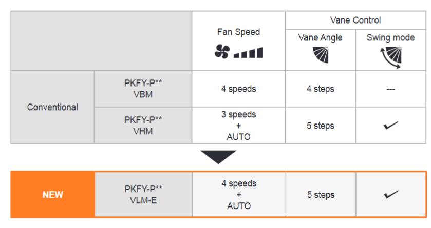 Οι νέες επιτοίχιες μονάδες PKFY-P VLM πλησιάζουν σε χαρακτηριστικά τις οικιακές εσωτερικές μονάδες.