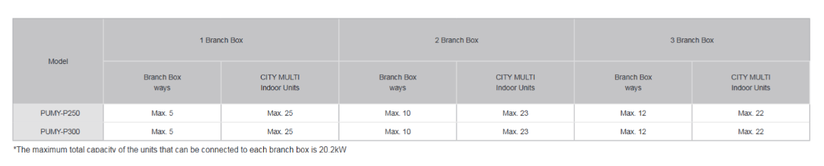 Με τα νέα PUMY YBM, εξασφαλίζεται υψηλός βαθμός ευελιξίας στο σχεδιασμό του συστήματος και στην επιλογή των εσωτερικών μονάδων χάρη στη διαμόρφωση του Branch Box. Είναι επίσης δυνατή η σύνδεση έως και τριών Branch Box.