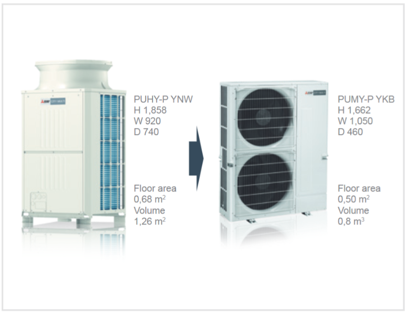 Η Small Y υψηλής χωρητικότητας έχει μικρότερο αποτύπωμα από τις τυπικές μονάδες CITY MULTI Y.
