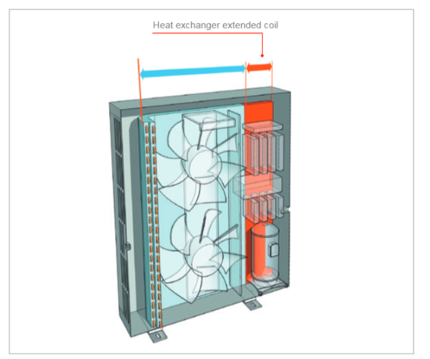 Ο σχεδιασμός της σειράς Small Y (PUMY) επιτρέπει τη χρήση ενός πηνίου άμεσης διαστολής αυξημένου τόσο από άποψη επιφάνειας ανταλλαγής όσο και πυκνότητας- η ταυτόχρονη υιοθέτηση του κυκλώματος υποψύξης Heat Inter Charger, μια τεχνολογία που εισάγεται για πρώτη φορά στις μονάδες αυτής της σειράς, εγγυάται υψηλή απόδοση και υψηλή ενεργειακή απόδοση στην ψύξη.