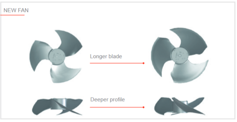 Ο ανεμιστήρας έχει βελτιωμένο σχεδιασμό που επιτρέπει την καλύτερη κατανομή του αέρα, αυξάνοντας την απόδοση.