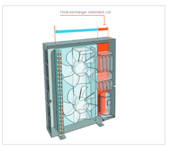Ο σχεδιασμός της σειράς Small Y (PUMY) επιτρέπει τη χρήση ενός πηνίου άμεσης διαστολής αυξημένου τόσο από άποψη επιφάνειας ανταλλαγής όσο και πυκνότητας- η ταυτόχρονη υιοθέτηση του κυκλώματος υποψύξης Heat Inter Charger, μια τεχνολογία που εισάγεται για πρώτη φορά στις μονάδες αυτής της σειράς, εγγυάται υψηλή απόδοση και υψηλή ενεργειακή απόδοση στην ψύξη.
