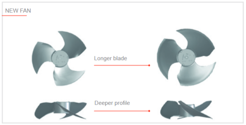 Ο ανεμιστήρας έχει βελτιωμένο σχεδιασμό που επιτρέπει την καλύτερη κατανομή του αέρα, αυξάνοντας την απόδοση.