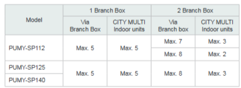 Οι μονάδες ενός ανεμιστήρα SMALL Y COMPACT (PUMY-SP) μπορούν να συνδεθούν με τις εσωτερικές μονάδες της γραμμής Residential και Commercial μέσω του κουτιού διακλάδωσης PAC-MK34/54. Είναι επίσης δυνατά μικτά συστήματα με εσωτερικές μονάδες VRF και μονάδες Residential και Commercial. Χάρη σε αυτά τα χαρακτηριστικά η ευελιξία του συστήματος είναι ουσιαστικά απεριόριστη, εξυπηρετώντας όλες τις ανάγκες.