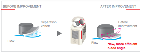 Ο ανεμιστήρας της σειράς YNW επανασχεδιάστηκε για να ταιριάζει με τον νέο τετράπλευρο συσσωρευτή. Τα πτερύγια βελτιστοποιήθηκαν για να ελαχιστοποιούνται οι απώλειες ροής υγρών.