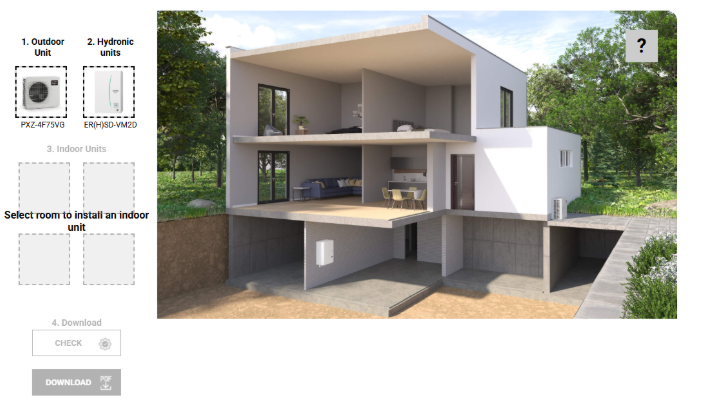 Επιλέξτε τις εσωτερικές μονάδες κλιματισμού της επιλογής σας και τις εξωτερικές μονάδες νερού (με ή χωρίς παραγωγή ζεστού νερού χρήσης) που ανταποκρίνονται καλύτερα στις ανάγκες σας.