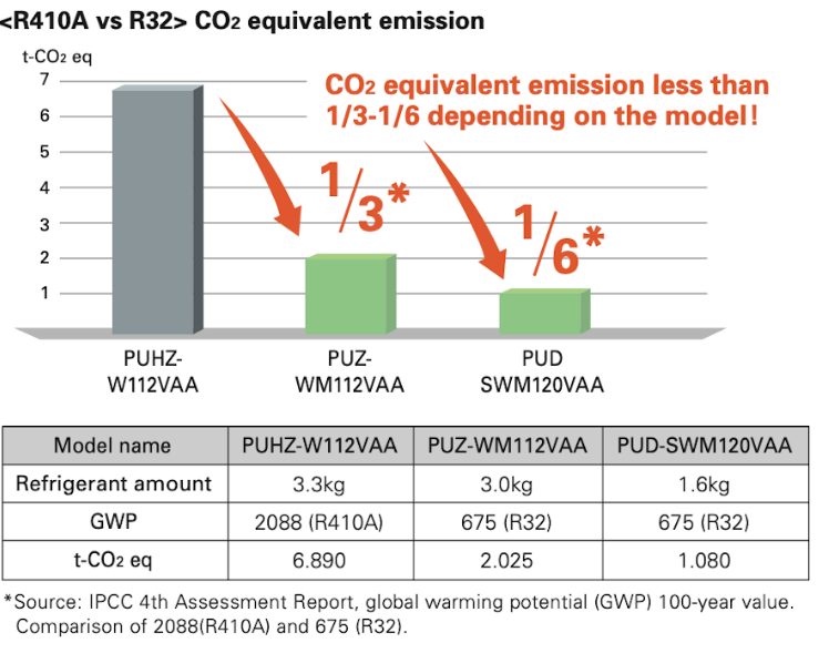 Αυτό το προϊόν της Mitsubishi Electric χρησιμοποιεί το ψυκτικό μέσο R32 με χαμηλή περιεκτικότητα σε αέρια που προκαλούν το φαινόμενο του θερμοκηπίου.