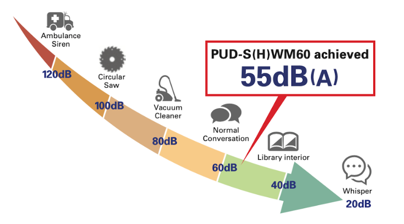 Οι αντλίες θερμότητας της Mitsubishi Electric έχουν σχεδιαστεί για να προσφέρουν εξαιρετικά αποδοτική και φιλική προς το περιβάλλον θέρμανση, με μείωση του επιπέδου ηχητικής ισχύος (PWL) κατά 10 dB(A) σε σύγκριση με τα συμβατικά μοντέλα.