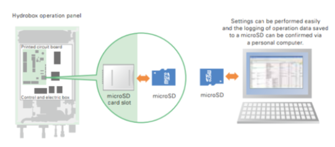 Αφιερωμένο εργαλείο για τα συστήματα Ecodan για την εισαγωγή των ρυθμίσεων λειτουργίας και την ευκολότερη εκκίνηση. Επιπλέον, τα δεδομένα λειτουργίας για περισσότερους από 2 μήνες αποθηκεύονται στην κάρτα SD του καταγραφέα και μπορούν να χρησιμοποιηθούν για διαγνωστικούς σκοπούς με τη χρήση υπολογιστή και ειδικού λογισμικού.