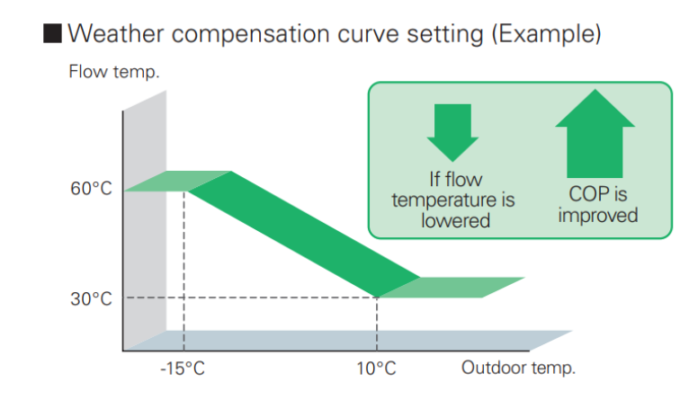 Η θερμοκρασία του νερού μεταβάλλεται ανάλογα με την εξωτερική θερμοκρασία που ανιχνεύεται από την αντλία θερμότητας, χωρίς να απαιτούνται πρόσθετοι αισθητήρες.