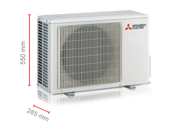 Οι διαστάσεις της εξωτερικής μονάδας είναι εξαιρετικά compact, ώστε ο χώρος που καταλαμβάνεται στη βεράντα ή στον κήπο να παραμένει στο ελάχιστο. Οι εκτεταμένες σωληνώσεις επιτρέπουν μια ευρεία επιλογή θέσεων εγκατάστασης, προσφέροντας μέγιστη ευελιξία για κάθε χώρο.
