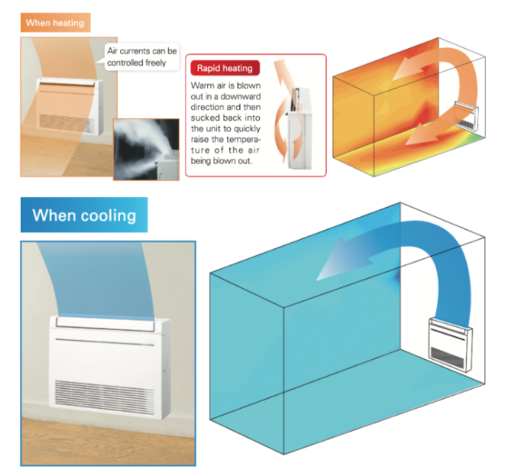 Όταν ξεκινά η θέρμανση, ένα μέρος του θερμαινόμενου αέρα κατευθύνεται προς τα κάτω, κοντά στον αέρα επιστροφής, έτσι ώστε να αναρροφάται από τη μονάδα και να επιτρέπει την ταχύτερη αύξηση της θερμοκρασίας του αέρα εξόδου.
