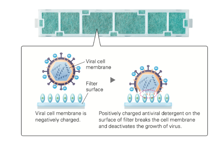Το V Blocking είναι ένα νέο φίλτρο καθαρισμού που βελτιώνει το προηγούμενο σύστημα φίλτρων ιόντων αργύρου προσθέτοντας αντιιική δράση ικανή να αναστέλλει έως και το 99% των ιών, βακτηρίων, μούχλας και αλλεργιογόνων.