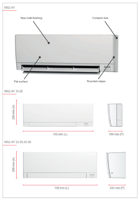 Οι μονάδες MSZ-AY διαθέτουν εκλεπτυσμένο σχεδιασμό με σατινέ φινίρισμα και εξαιρετικά compact διαστάσεις.