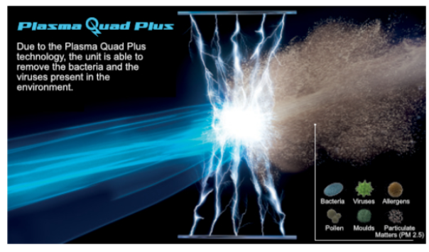 Πλάσμα Quad είναι η διήθηση που είναι ικανή να εξαλείψει βακτήρια και ιούς όπως ο SARS-CoV-2 χάρη σε μια τεχνολογία που χρησιμοποιεί ένα ηλεκτρικό πεδίο και μια σειρά ηλεκτρικών εκκενώσεων από τις οποίες περνάει ο αέρας που τροφοδοτείται στο δωμάτιο.