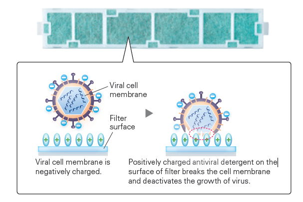 Το φίλτρο V Blocking της Mitsubishi Electric είναι ένα νέο φίλτρο καθαρισμού με ιόντα αργύρου, ενισχυμένο με αντι-ιική δράση, αποτελεσματικό κατά των βακτηρίων, των μούχλας και των αλλεργιογόνων.