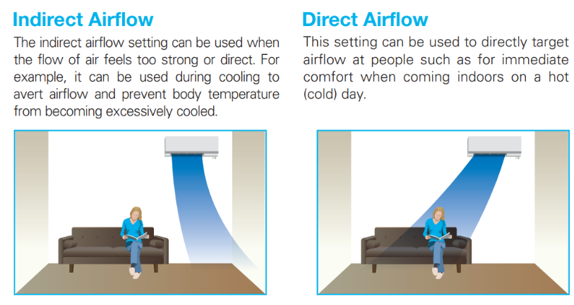 Ο χρήστης μπορεί να αποφασίσει, ενεργοποιώντας τη λειτουργία "direct/indirect", αν θα κατευθύνει ή όχι τη ροή του αέρα σε περιοχές όπου υπάρχουν άτομα.
